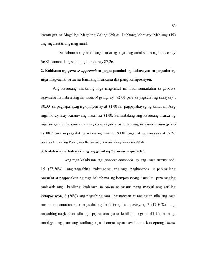 Dito napansin ang parsyal ng pagkakaiba pagkakatulad ng mga pag-aaral ng maikling kwento sa mga tesis at disertasyon. Dito rin nakita ang angkop at nararapat na desinyo na mapagkunan ng tumpak na idea para sa mga datos.