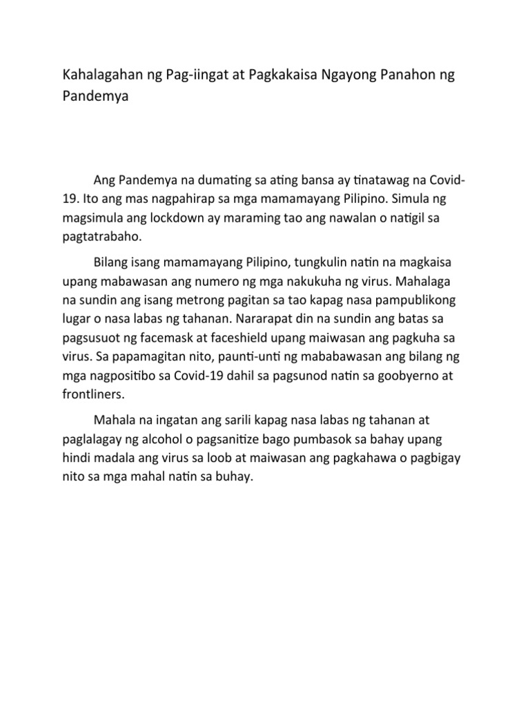 Bakit mahalaga ang pagkakaisa in 500 words Ang pagkakaisa ay tumutukoy sa pagtutulungan mahalaga ang pagkakaisa sapagkat ito ang nagiging dahilan ng pag-unlad ng isang pamayanan o bansa nagiging napaka unlad ng isang bansa kung ang lahat ng tao ay nagkakaisa simula sa kanilang pinuno at mga mamayan nagiging daan din ng katahimikan ng isang bansa o pamayanan ang pagkakaisa sa loob ng. Pinapaunlad nito ang kabuhayan ng mmga bansang kasapiB. Ang layunin ng NPT na inaprubahan na ng mahigit 180 bansa ay upang lubusang maalis ang mga sandata.