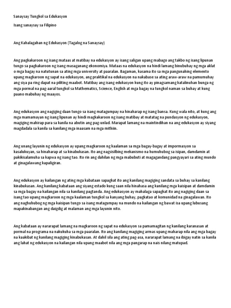 Ang edukasyon ay mahalaga sa mga sinaunang pilipino sapagkat. Ang malawak na kaalaman ng mga unang Pilipino ay hango sa edukasyong di-pormal. Essay Mahalaga Ang Contest Edukasyon Bakit. Walang paaralang pinapasukan at mga asignaturang pinag-aaralan.