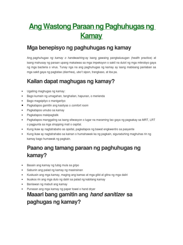 Bakit mahalaga ang handwasing at pagsisipilyo. Sa mga pagkakataon na hindi natin alam ang kalooban ng Diyos ang pananalangin ang paraan upang malaman natin ang Kanyang kalooban. Mahalaga ang pagiging bukas at paggalang sa bawat isa dahil ang respeto ay nagsisimula sa pagtratrato mo sa iba. Katwiran at Batas sa Hinilawod 2013 Johnny at Jun Belgica.