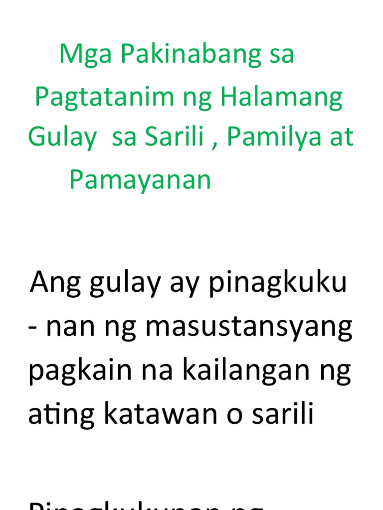 If playback doesnt begin shortly try restarting your device. Ang pagtatanim ang isa sa mahalaga bagay na dapat matutunan ng marami sa atin dahil madami itong kabutihang dulot maraming uri o paraan ng pagtatanin kahit na wala kang malawak na lupain ay maari kang magtanim maaring sa iyong bakuran kung wala namang bakuran ay maari kang maglagay ng lupa sa paso at maari mo na itong pagtaniman ng mga gulay o mga bulaklak ang. Maasahan mong malaki ang maibabahagi ng gawaing ito hindi lamang sa sarili pamilya bagkus sa bayan.