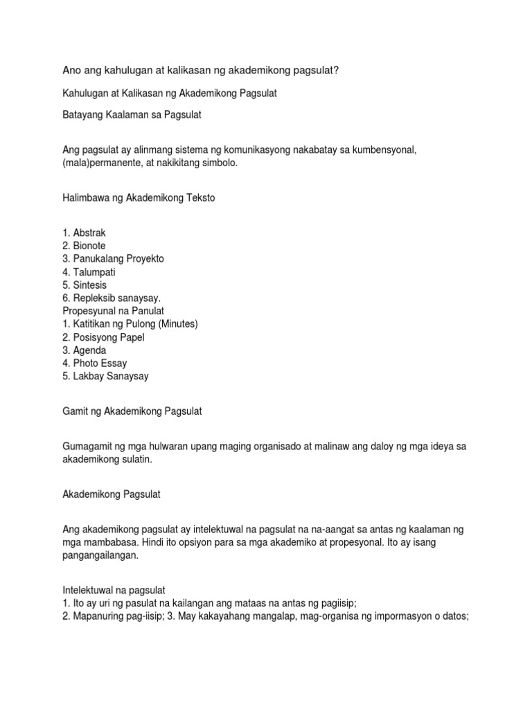 Bagkus maging sa ibat ibang institusyon tulad ng medisina at pagnenegosyo. Iba pang mga katanungan. Sa aking napag aralan mahalaga ang kasanayan sa akademikong sulatin.