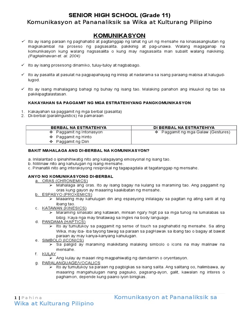 Bakit mahalagang mapag-aralan ang ibat ibang kakayahang komunikatibo gaya ng linggu. Ng wikang pambansa para sa mga pilipino Ano ang epekto sa kabataan Ag social networking. Ibat-ibang Anyo ng Di-Verbal na Komunikasyon 1.