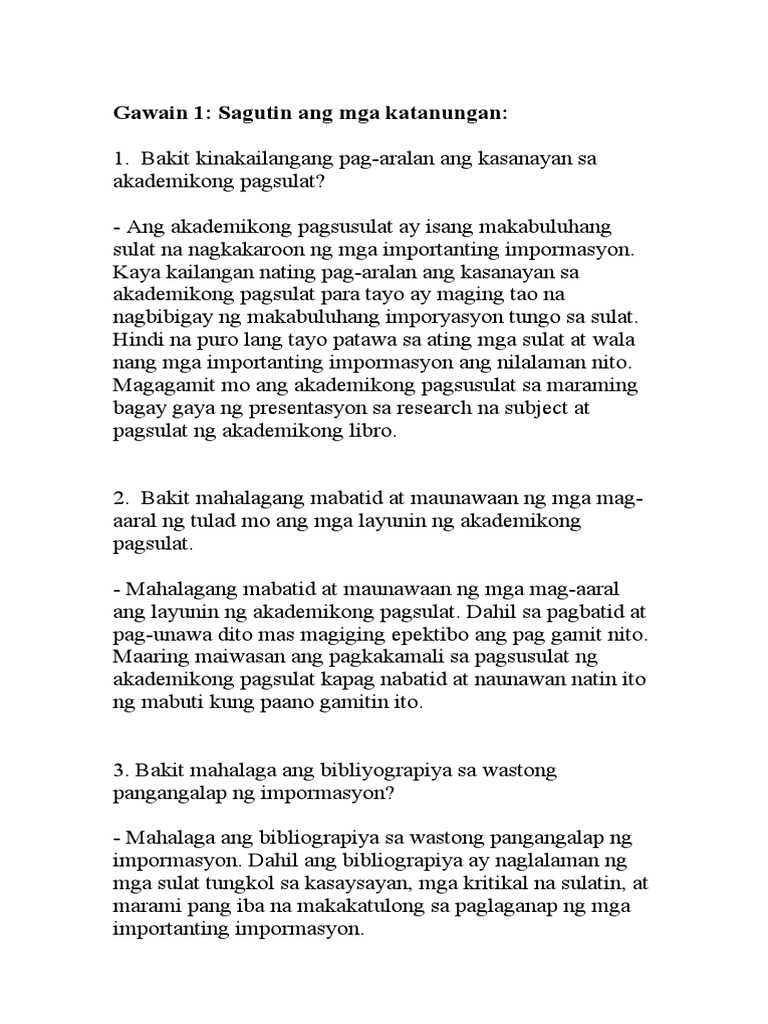 - sa asignaturang ito lilinangin sasanayin at huhubugin ang kasanayan at kaalaman ng mga mag-aaral sa pagsulat gamit ang akademikong Filipino - ang lahat ng pagsasanay sa pagsusulat na naranasan ng mga mag-aaral mula sa elementarya sekundarya kolehiyo at. Bakit mahalagang matutunan ang akademikong pagsulat na pagsulat larangang nais talakayin op 1. Kailangan nating bigyang halaga ang akademikong sulatin para matutunan natin ang wastong pagsulat ng mga ito.