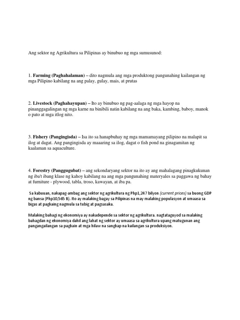 Ang agrikultura ay ang. Upang maipagpatuloy ang paikot na daloy ng ekonomiya bansa 44. Itoay may mahalagang tungkulin sa publikong sektor 2.