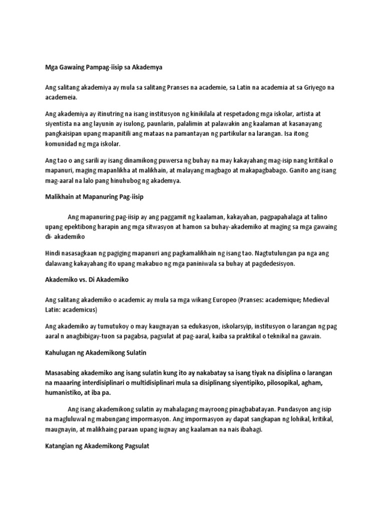 The correct answer was given. Bakit mahalaga ang akademikong sulatin sa buhay ng isang mag-aaral na tulad mo. Garciano Paulyn Mae J ACT154.