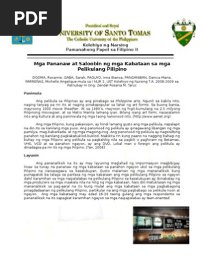Mga Pananaw At Saloobin Ng Mga Kabataan Sa Mga Pelikulang Pilipino